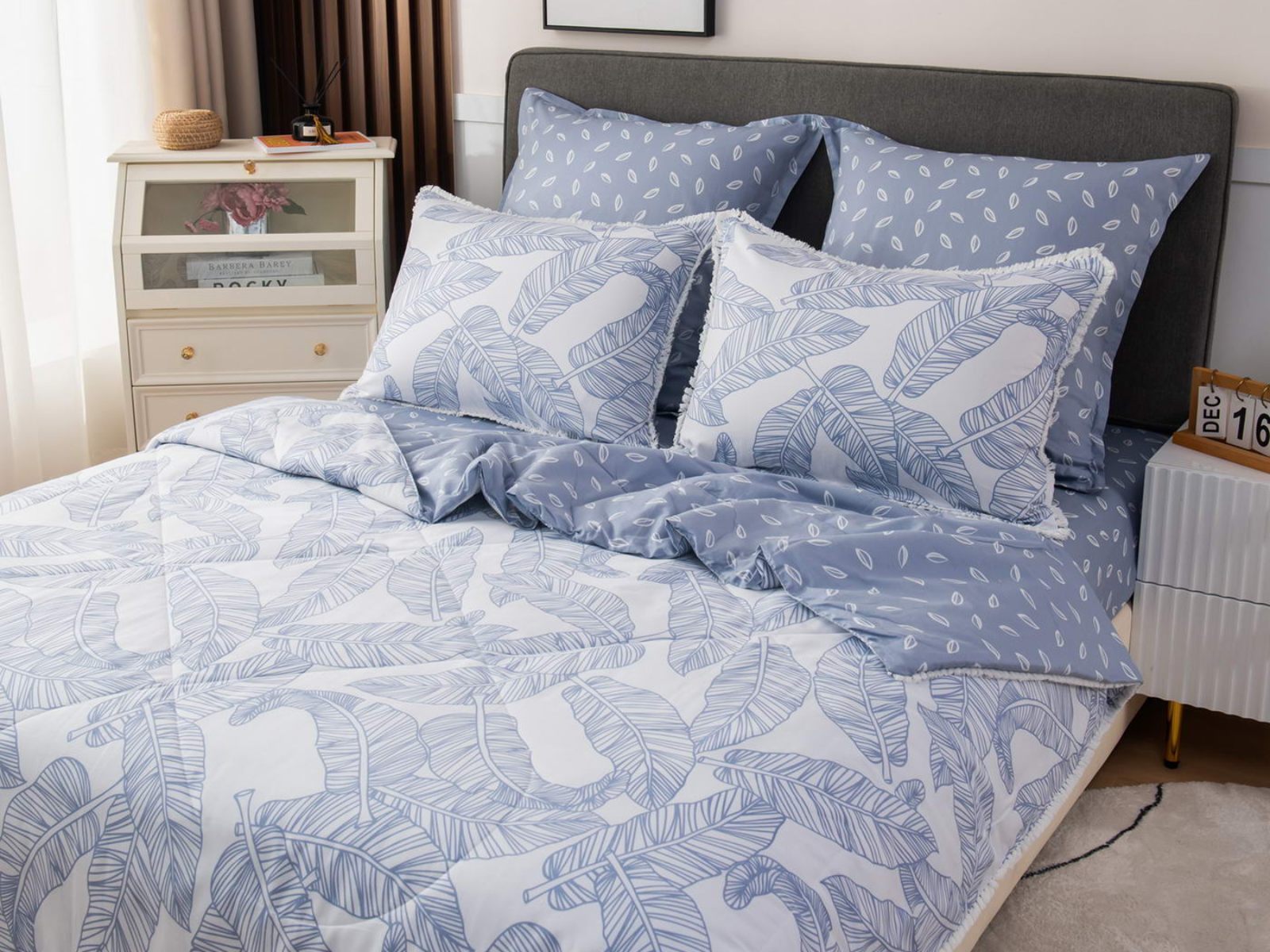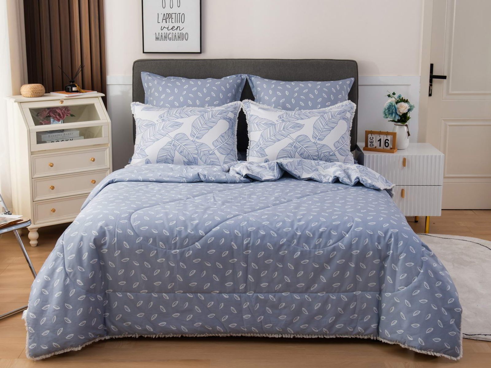 В комплекты комфортеров с одеялом Бернадетт входят наволочки, простыня и легкое всесезонное одеяло. Оцените это современное и очень удобное решение, которое идеально подходит тем, кто не любит возиться с пододеяльниками.