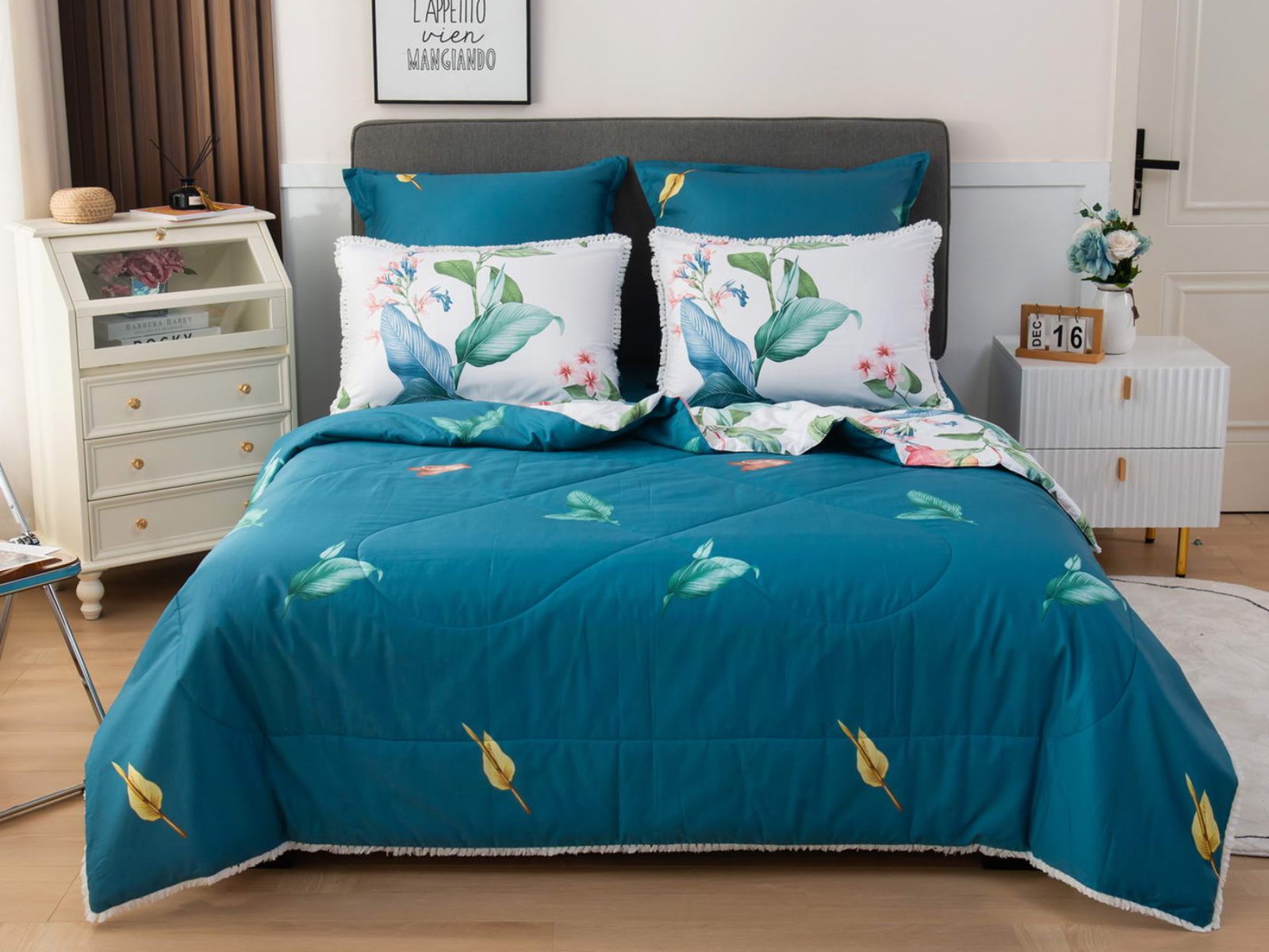 В комплекты комфортеров с одеялом Бернадетт входят наволочки, простыня и легкое всесезонное одеяло. Оцените это современное и очень удобное решение, которое идеально подходит тем, кто не любит возиться с пододеяльниками.