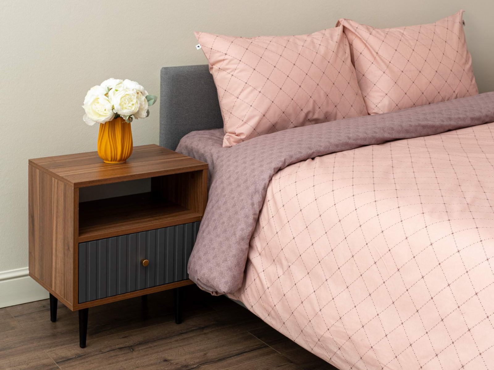 Комплект Мэгги легко стирается в обычной машине в бережном режиме и также легко гладится.