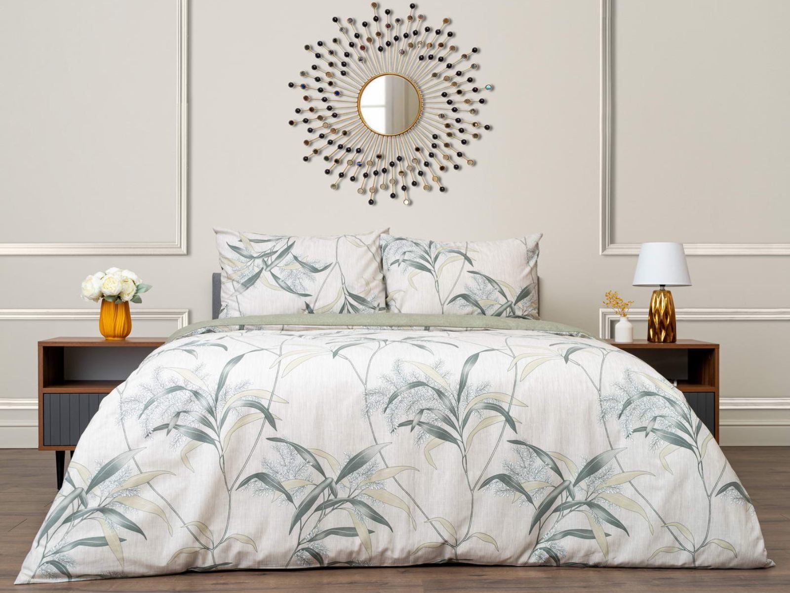 Комплект Мэгги легко стирается в обычной машине в бережном режиме и также легко гладится.