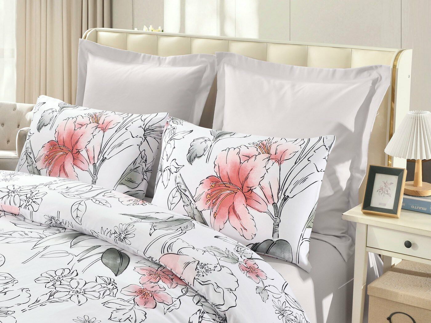 Пошив: пододеяльник на пуговицах, наволочки с клапаном.