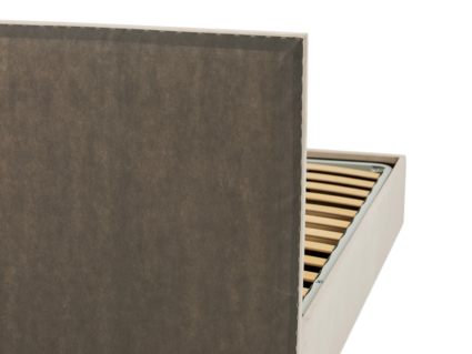 Кровать оснащена основанием с ламелями. Рекомендуемая высота матраса от 13 см, вес матраса до 50 кг.