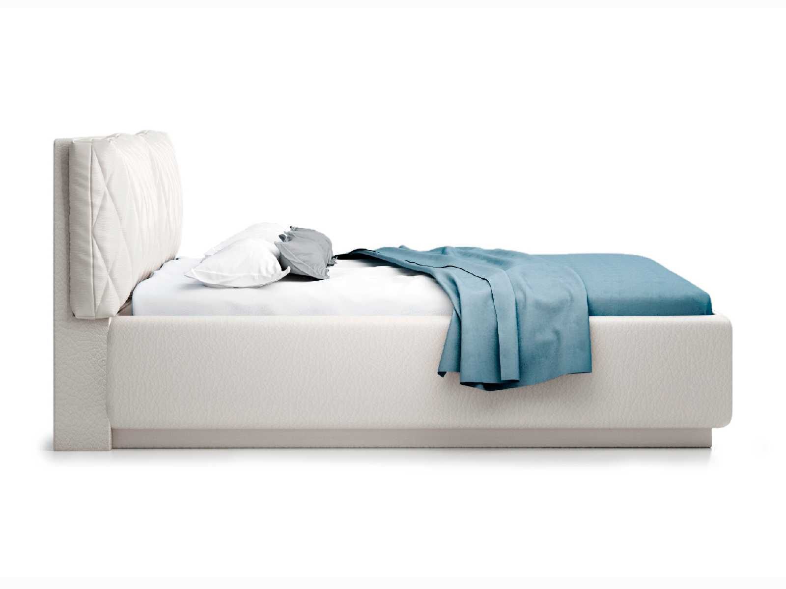 Кровать укомплектована IQ с подъемным механизмом и ящиком для белья без дна (дополнительная платная опция - дно к ящику IQ из HDF (ХДФ). Каркас кровати на цоколе, декоративный чехол на цоколе съёмный. Глубина ящика для белья - 30 см, без ограничения нагрузки на ящик.