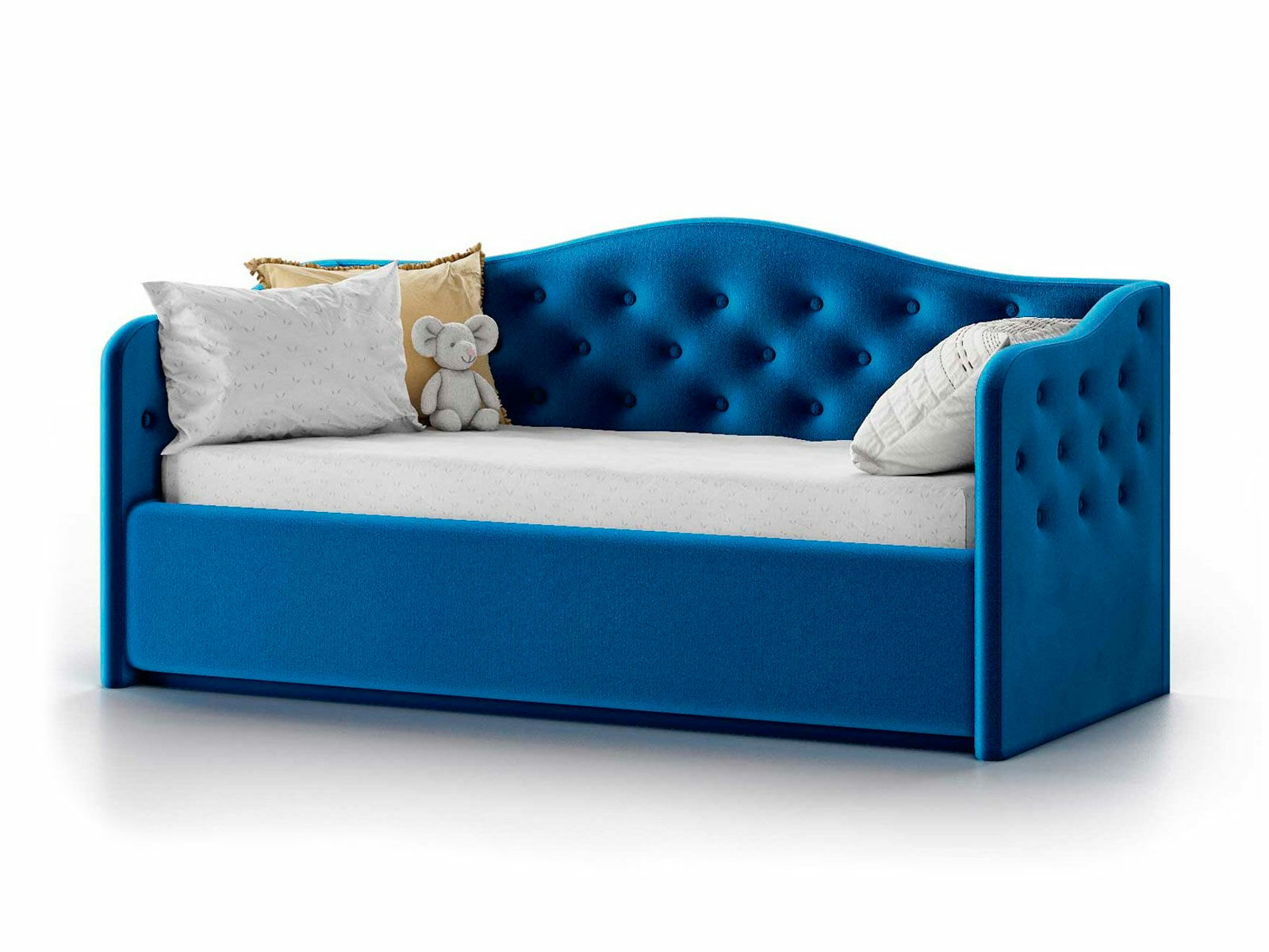 Прекрасная и воздушная кровать-софа Nuvola Elea идеально подойдет как взрослым, так и детям. Кровать выполнена в классическом стиле, изголовье-спинка и боковины кровати имеют плавные изгибы и декорированы изящными пуговицами.