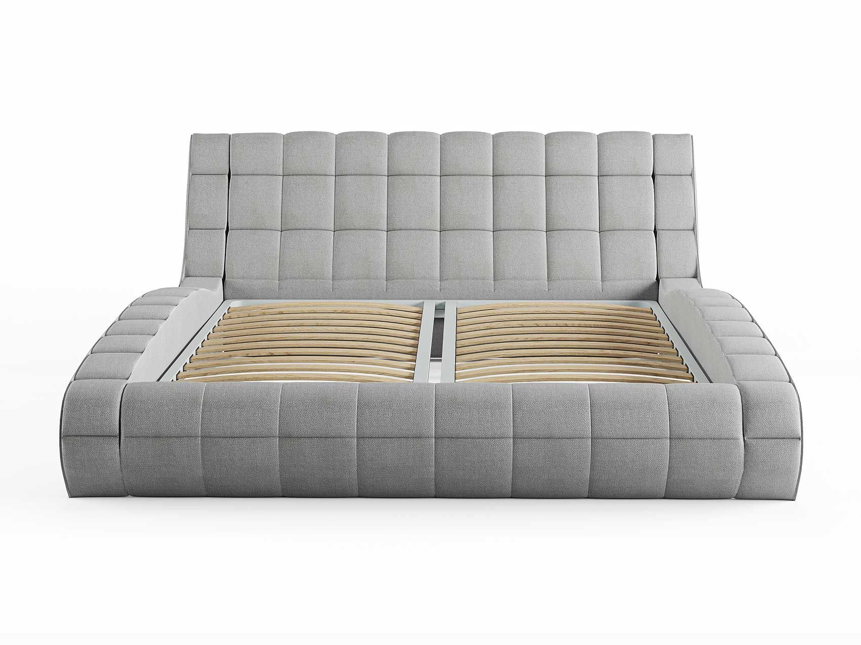 Кровать комплектуется металлическим основанием (без опор), которое имеет 13 рядов встроенных березовых ламелий на каждое спальное место, обеспечивая равномерное распределение нагрузки.