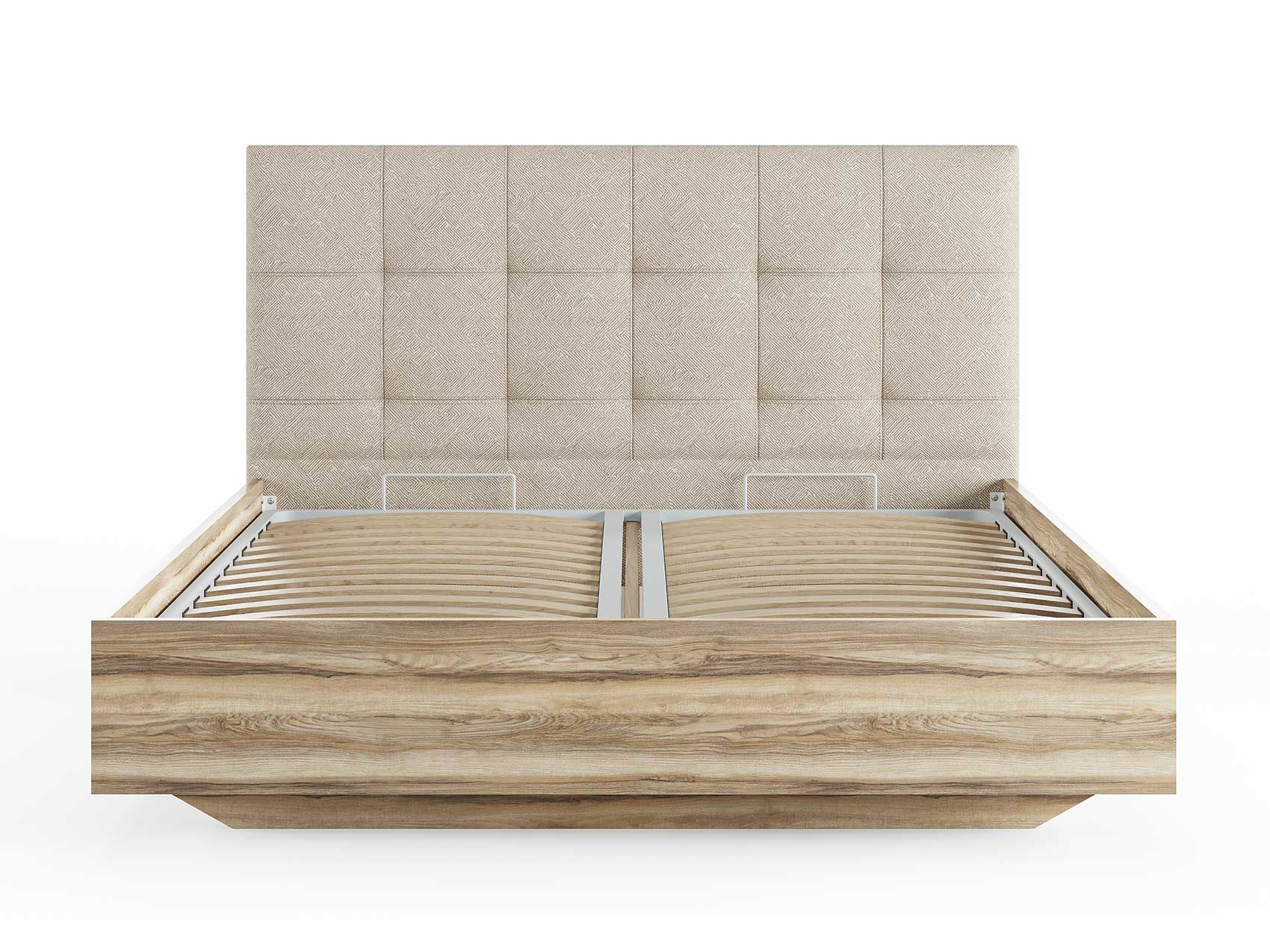Кровать комплектуется металлическим основанием (без опор), которое имеет 13 рядов встроенных березовых ламелий на каждое спальное место, обеспечивая равномерное распределение нагрузки.
