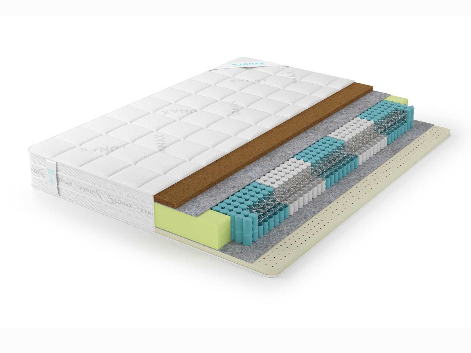 Ортопедический матрас Lonax Latex-Cocos S1000 5 Zone построен на основе натуральных материалов. Модель двусторонняя и имеет абсолютно разную жесткость сторон.