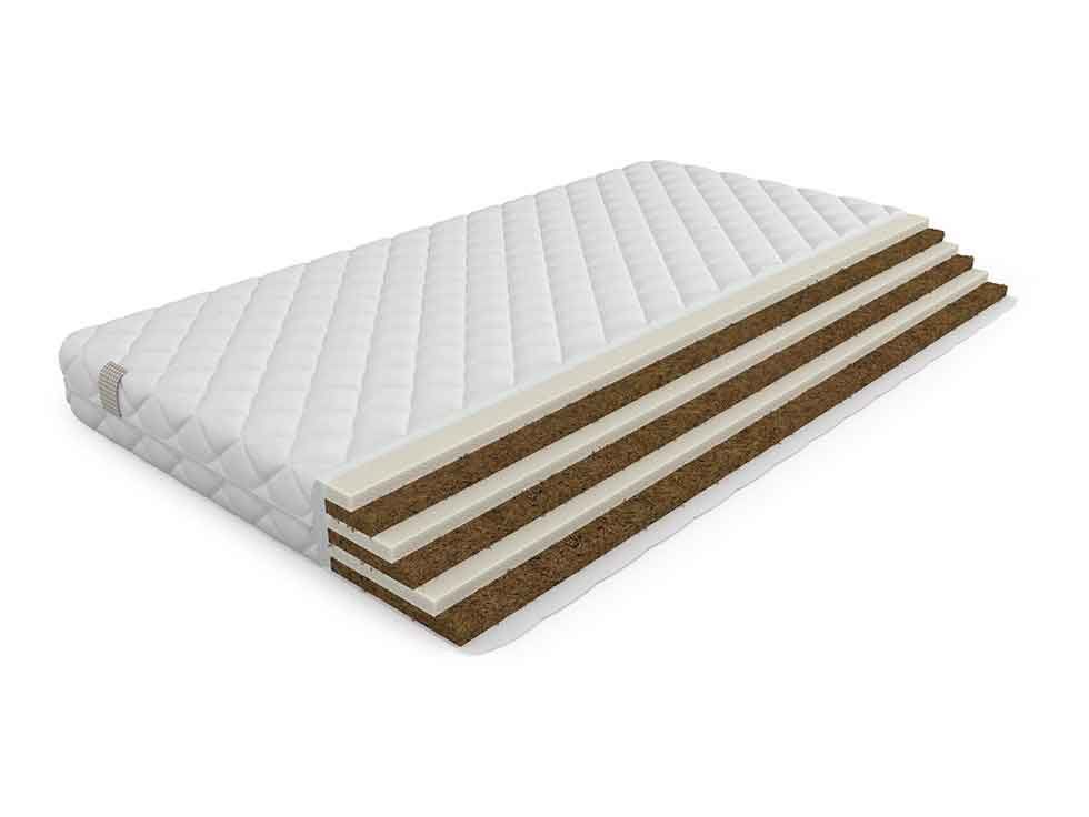 «Sandwich L» – недорогой матрас средней жесткости, c ортопедическим эффектом. Беспружинное основание с последовательно чередующимися слоями кокосовой койры и эластичного ППУ обеспечивает упругость и жёсткость, позволяет сохранять форму, не слеживаться и не проминаться.