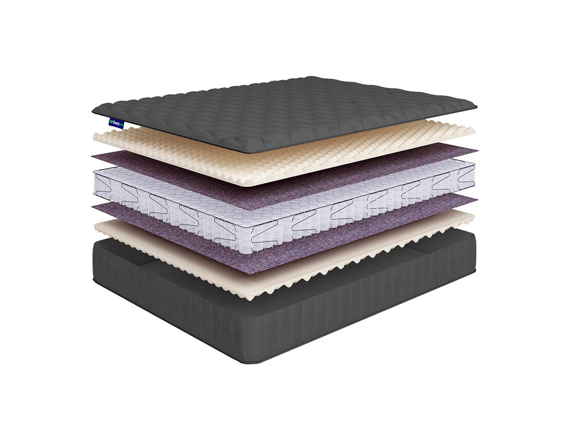 Основным наполнителем матраса является рельефный материал – airfoam massage. Он индивидуально подстраивается под тело спящего, оказывает микромассажный эффект и благоприятно сказывается на кровотоке во время отдыха.