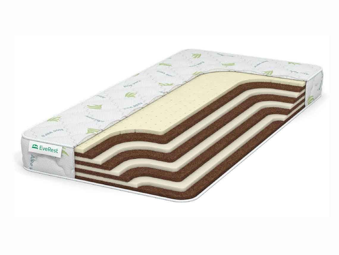 Модель EveRest микс кокос получила великолепно продуманное комбинированное наполнение. Матрас изнутри напоминает слоённый пирог, где каждая плита – определенный вид материалов.