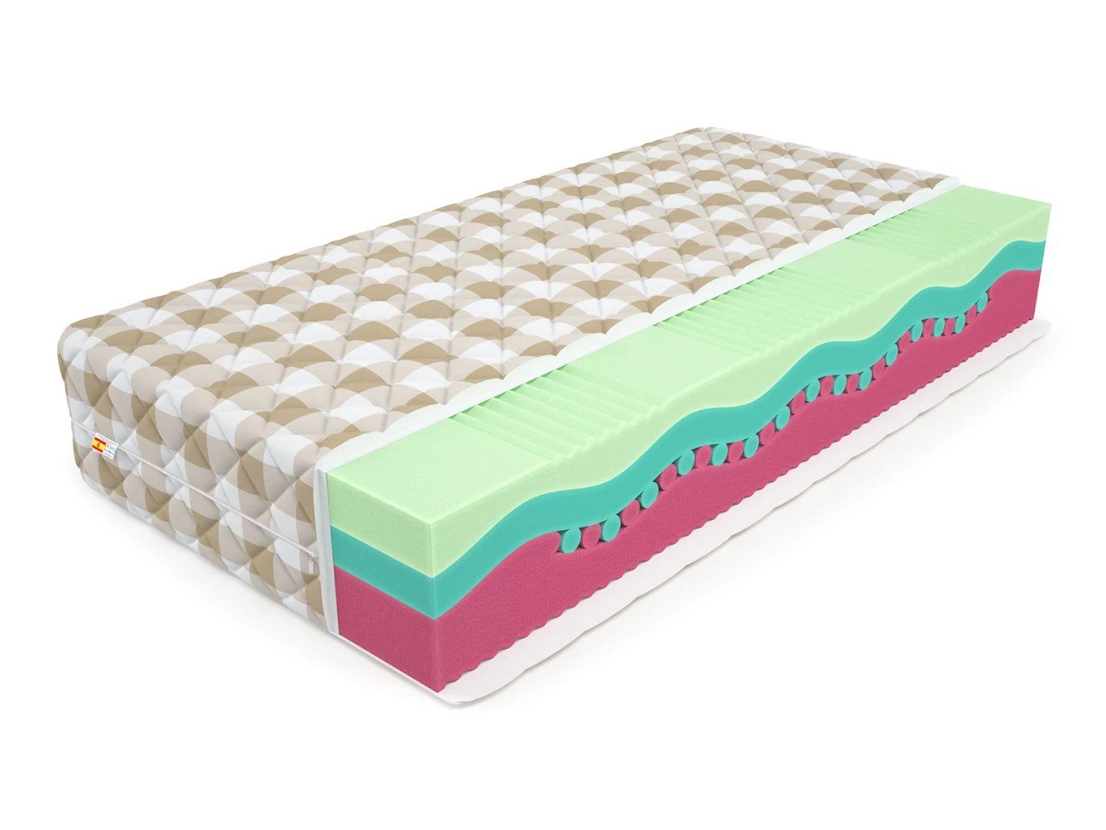 С добавленной 3D-перфорацией, при которой вес тела лежащего человека оказывает давление на матрас, а наклонные зоны за счет верхней части монолитного блока из соевой пены Solid Foam мягко и аккуратно растягивает спину, шею и ноги. Облегчение болей в спине, приятное расслабление и легкость утром гарантированы. Матрас стал еще более воздухопроницаемым и увеличился ортопедический эффект. Этот материал обладает хорошим воздухообменом, поэтому ваш матрас «дышит». Вспененная соя не имеет запаха, изготавливается в Испании по «зеленой технологии» и соответствует всем Европейским стандартам. Имеет множество сертификатов и положительных отзывов покупателей по всему миру.