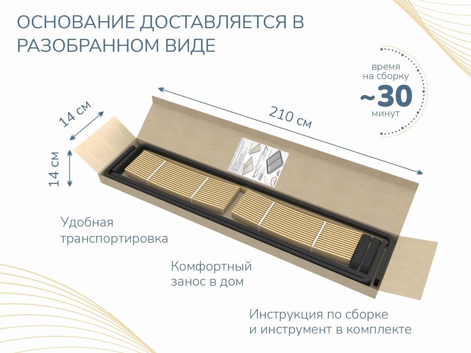 Основание Базис разборное предназначено для любых матрасов, как пружинных так и беспружинных. Оно улучшит анатомические свойства матраса и продлит срок его службы. Основание очень прочное и долговечное, так как его каркас выполнен из металла, а широкие ламели из березы. Основание поставляется в компактной упаковке в разобранном виде, с ножками и необходимым комплектом фурнитуры. Базис разборное можно использовать как с ножками, так и без них, так что оно подойдет к кровати с любым каркасом.