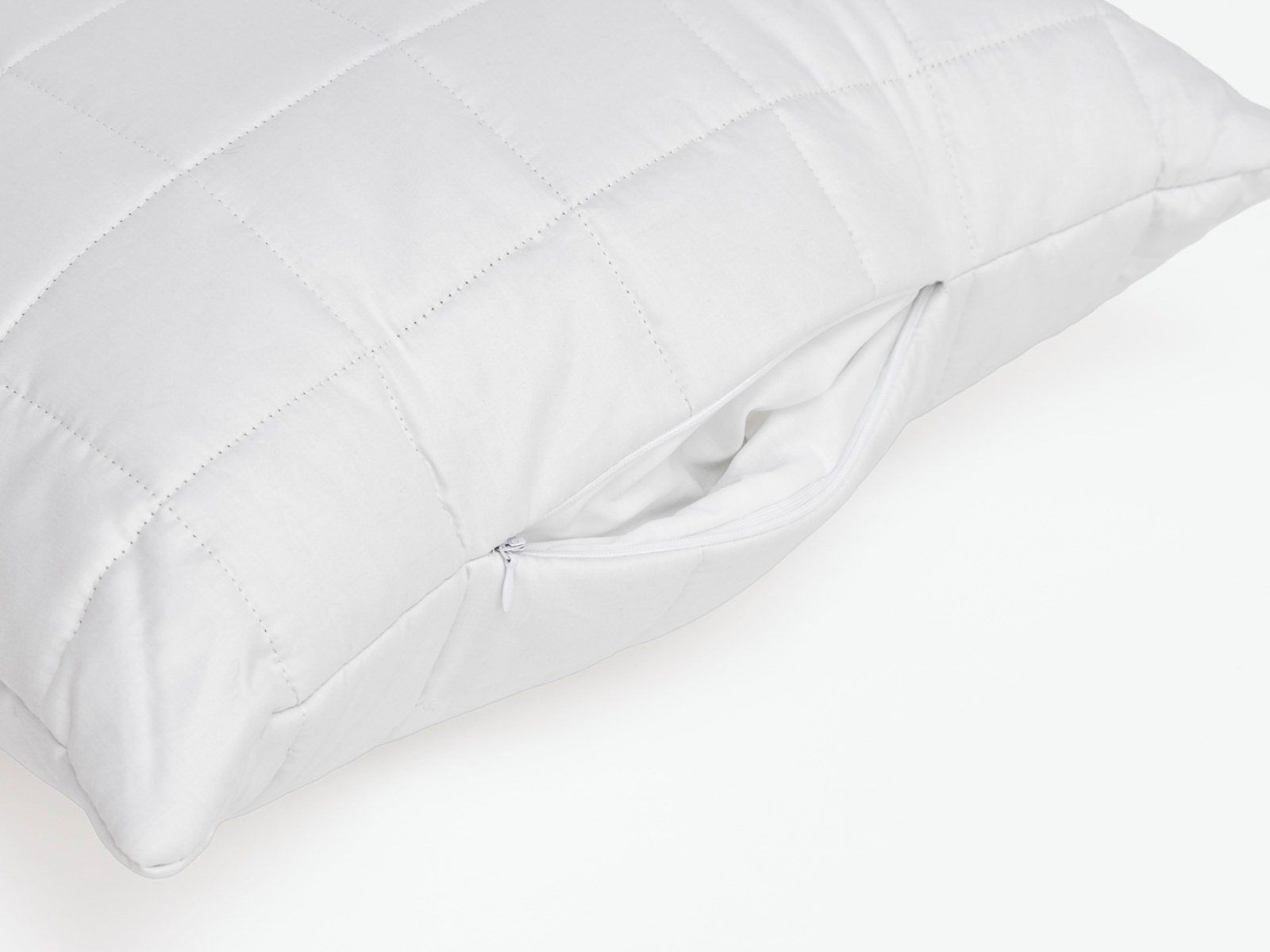 Стеганный внешний чехол подушки - на "молнии" предназначенной для возможности регулировки количества наполнителя внутренней камеры, который можно отбирать-добавлять вручную, подбирая оптимальный объем.