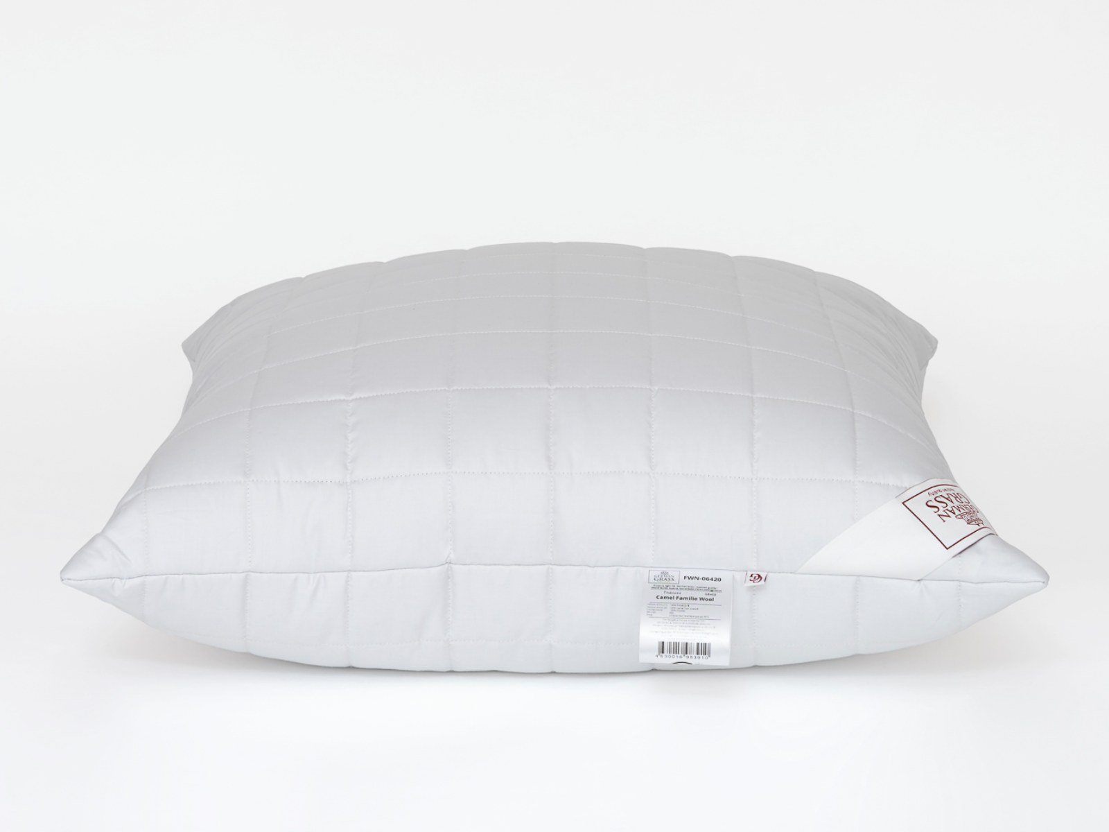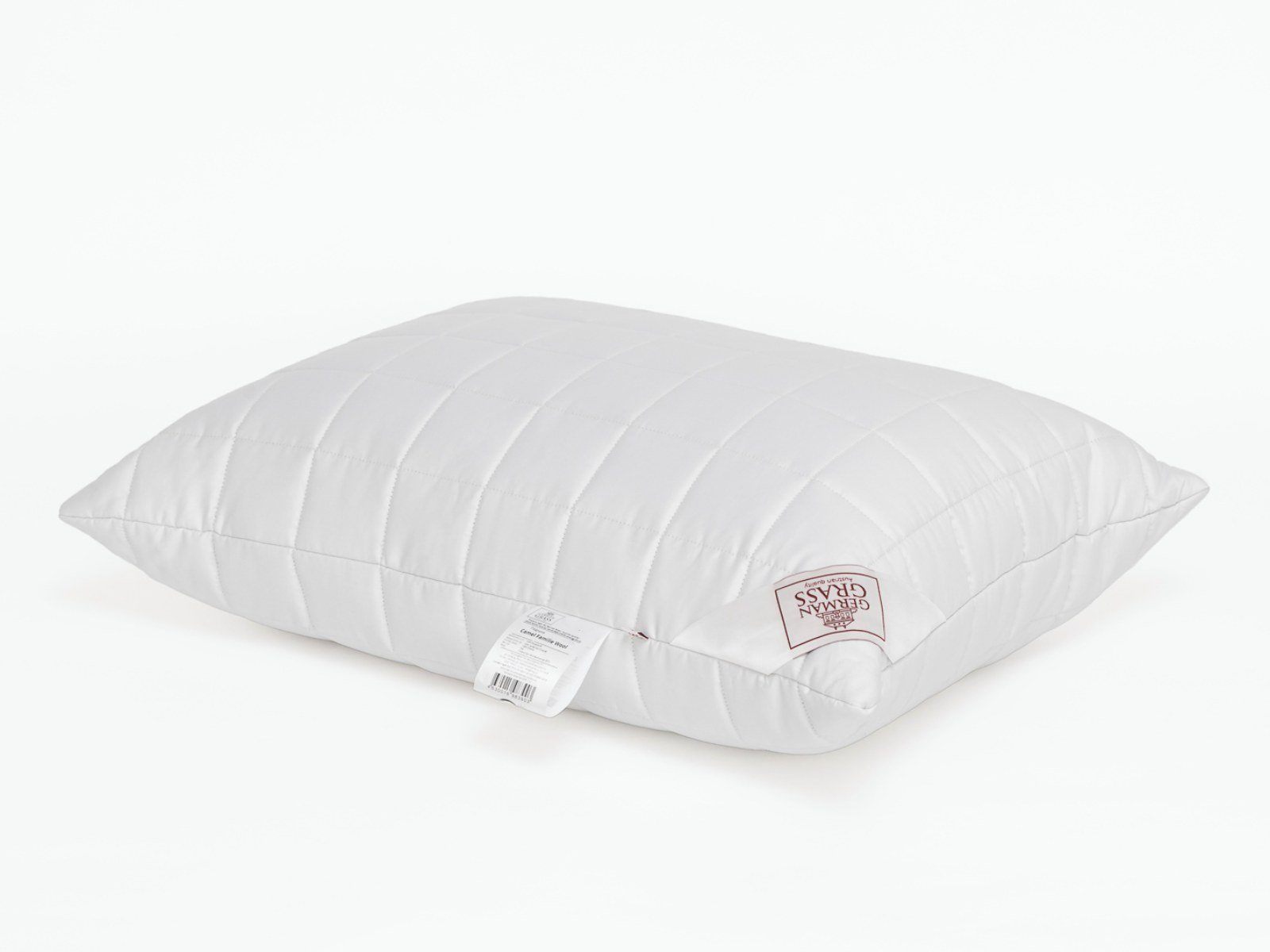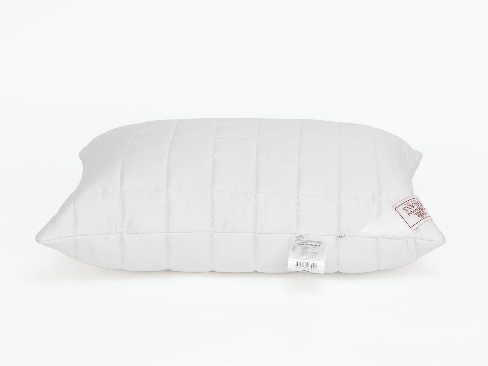 Подушка Camel Familie Wool с регулируемой степенью комфорта в гладком сатиновом чехле из 100% хлопка, наполненном термоскрепленным пластом из верблюжей шерсти.