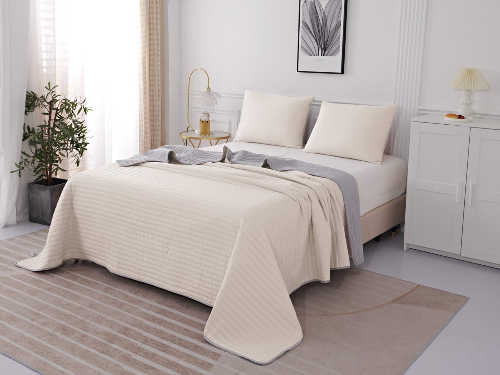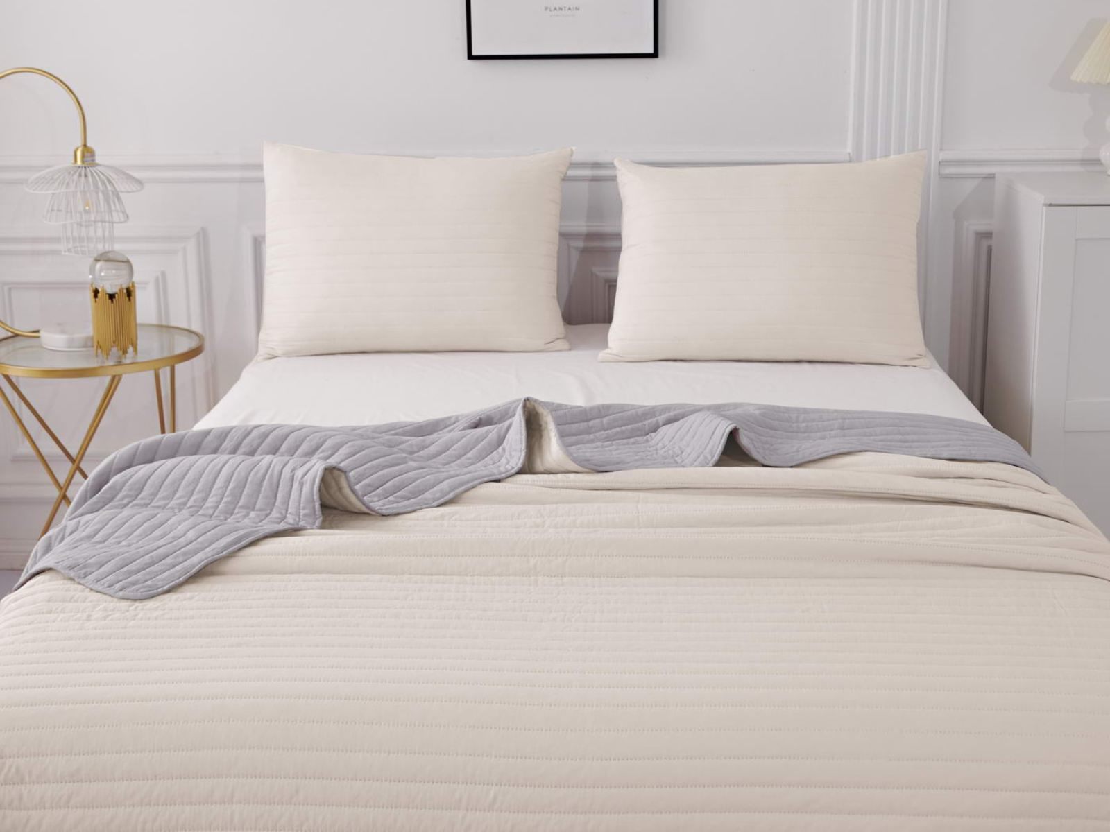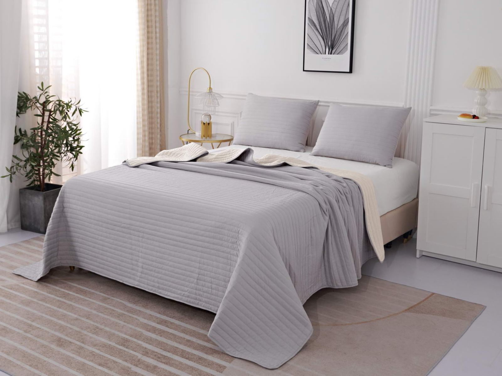 Двусторонние стеганные покрывала Самуэль выполнены из вискозы и хлопка, они легкие и прочные. В комплект входят покрывало и одна либо две наволочки (50х70 см) из аналогичного материала в зависимости от размера, вы можете использовать покрывало по назначению, либо в качестве постельного белья. В любом случае, вы будете в восторге от этого комплекта!