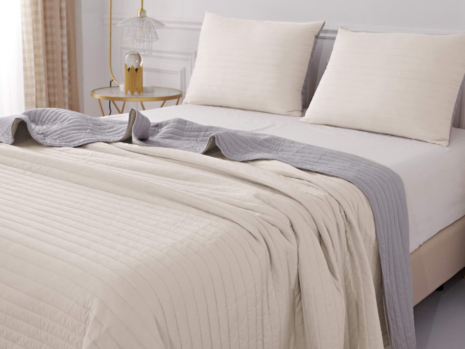 Покрывала двусторонние, оборотная сторона декорирована окантовкой, они выглядят сдержанными и универсальными. Изделия выполнены в восьми оттенках, подойдут для различных интерьеров, объединяет коллекцию потрясающее качество и приятный внешний вид.