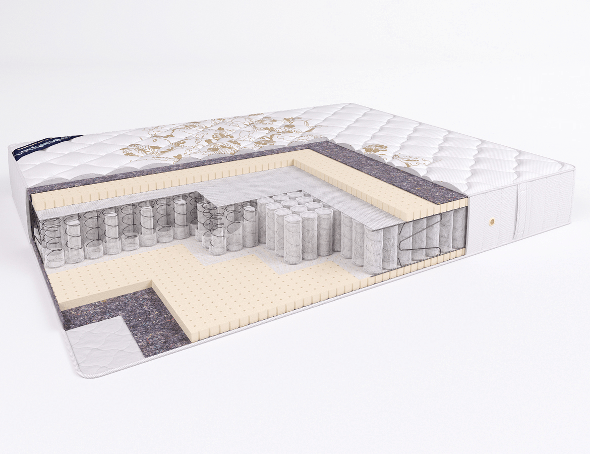 Матрас Prima Latex DS выполнен из натуральных и экологичных материалов. В основе матраса лежит мультизональный независимый пружинный блок «Дуэт», позволяющий создать оптимальную точечную поддержку позвоночника во время сна. Блок «Дуэт» отлично подойдет для пар со значительной разницей в весе (более 40 кг). Особенность его конструкции заключается в том, что в пружинный элемент включена еще одна пружина меньшего диаметра и меньшей длины, которая находится внутри основной пружины. Таким образом, данный вид блока позволяет обеспечить высокий комфорт и ортопедическую поддержку сразу для широкого диапазона нагрузок – внешние пружины работают при незначительном весе спящего, а внутренние вступают в действие при увеличении нагрузки. Основным наполнителем матраса является натуральный латекс. Слой натурального латекса, придает изделию мягкость и обеспечивает комфорт во время сна. Чехол матраса выполнен из трикотажа с высокообъемной стежкой, что создает приятные тактильные ощущения при контакте с изделием. Возможна замена одной из сторон чехла 100% овечьей шерстью.