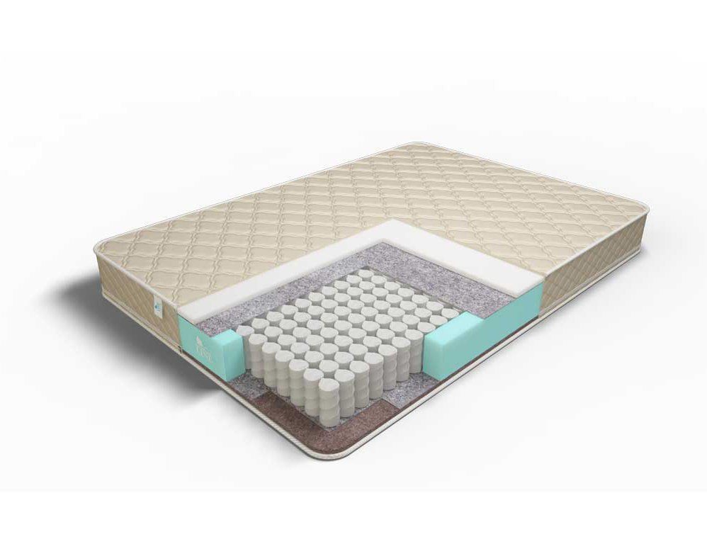 Между Ecofoam и бикокосом установлен блок независимых пружин TFK. Он отвечает за распределение нагрузки и удерживает корпус отдыхающего человека на поверхности, подстраиваясь под изгибы его силуэта. Автономная работа каждой пружины обеспечивает точеную адаптацию матраса.
