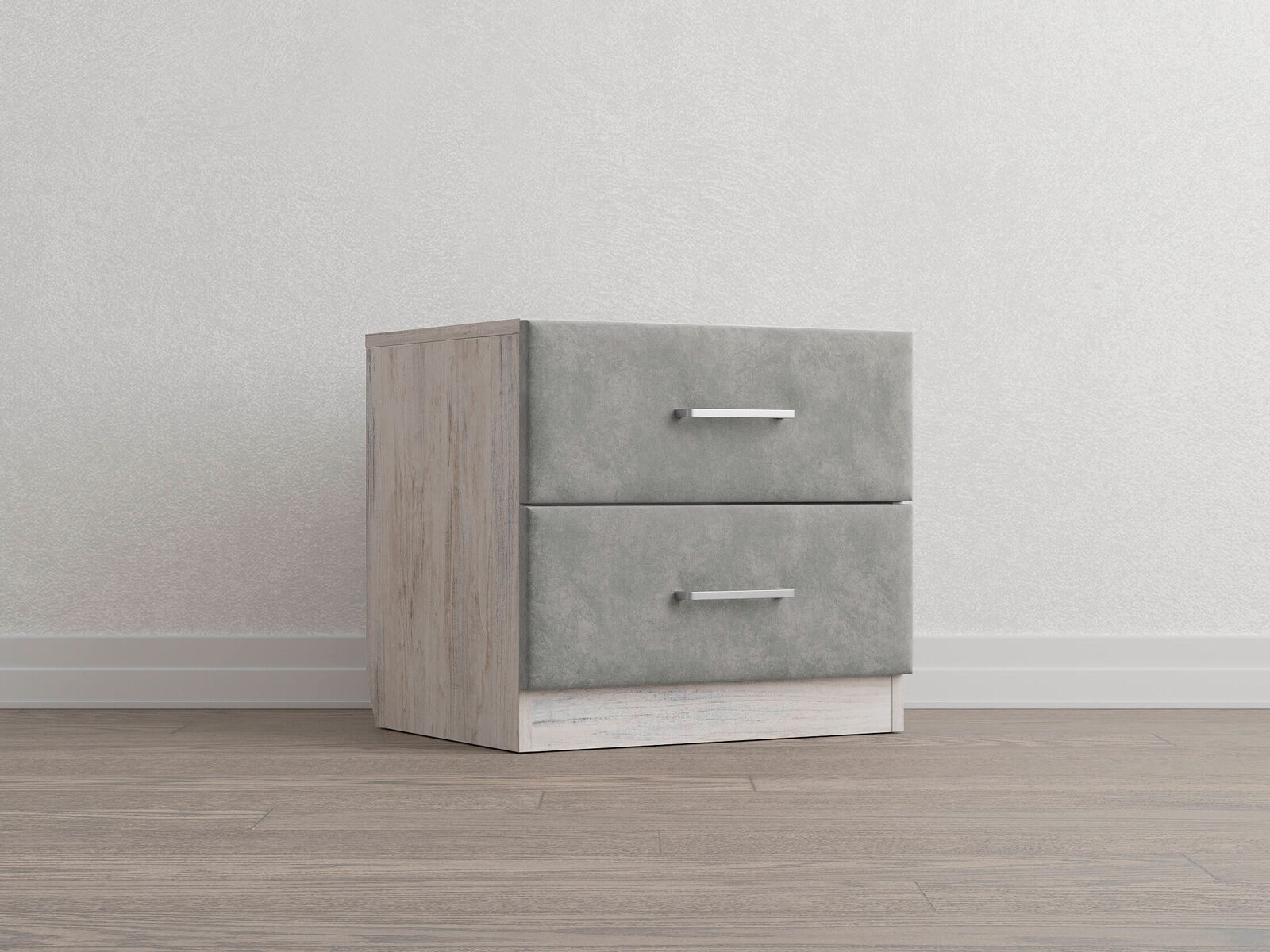 Элегантная комбинированная тумба, сочетающая в себе лаконичность ЛДСП и уют мягких фасадов ящиков, обтянутых тканью. Конструкция тумбы предусматривает два вместительных выдвижных ящика с направляющими скрытого монтажа и доводчиками. Корпус из ЛДСП гарантирует долговечность и устойчивость к механическим повреждениям, а мягкие фасады в ткани и изящные металлические ручки добавят уют. Большое разнообразие текстур и цветовых решений для гармоничной интеграции в любой интерьер.